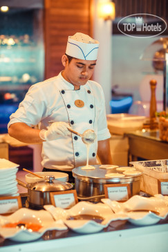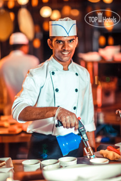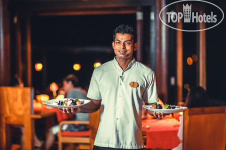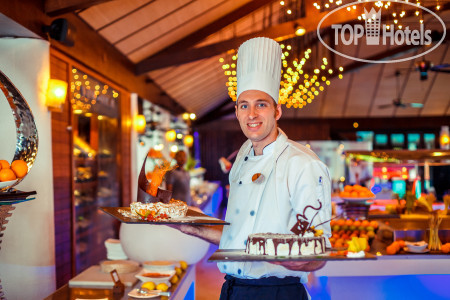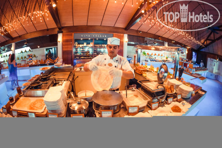 🍷 Вкусное питание, богатая алкогольная карта (подойдет ценителям). Питание было хорошее. Да, здесь нет гигантских шведских столов, как в отелях Турции. Вообще по питанию на Мальдивах нужно четко понимать, что это не Турция и все привозное и дорогое. Найти отель с хорошим питанием, чтобы не разочароваться можно. Этот отель из таких. Всегда есть свежие роллы "из-под ножа", рыба, были креветки, стейки, курица терияки, ежедневно были тематические вечера. Есть аля-карт рестораны, один из них Tamarind индийская и тайская кухни. Один ужин в неделю бесплатно. Детского стола как такового нет в полноценном его понмании, но думаю, что если что-то для ребенка попросить - приготовят. В барах всегда есть фри, пицца. Десерты в отеле кстати очень и очень вкусные и их реально много.