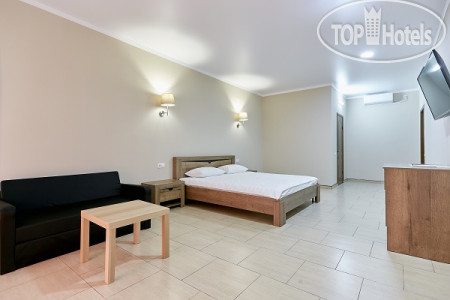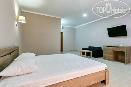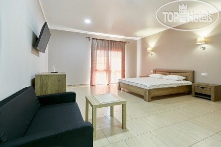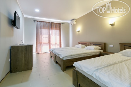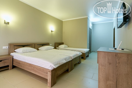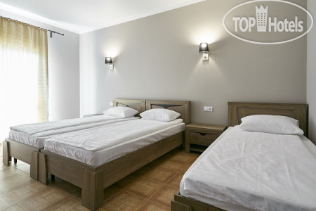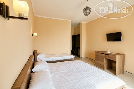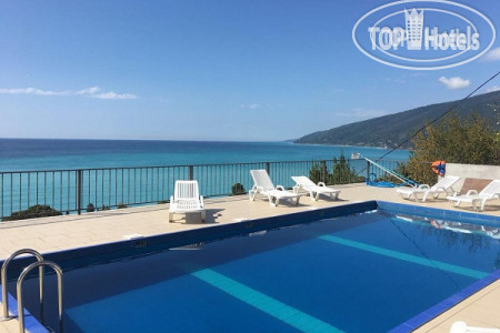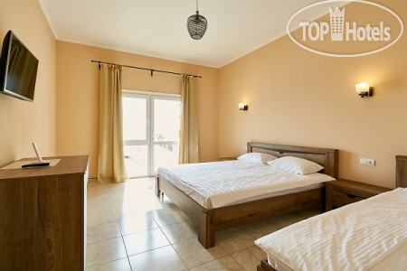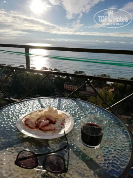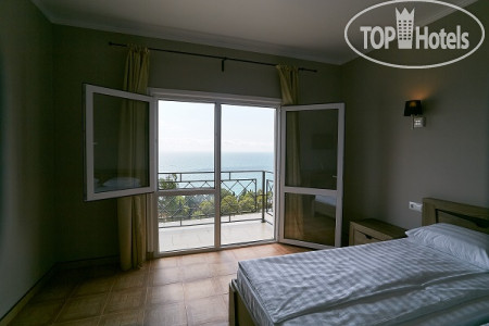 У нас был просторный трехместный чистый номер на 2 этаже со всем необходимым (кондиционер, телевизор, чайник, холодильник). Все номера в отеле с балконом (кроме 1 этажа) и красивейшим видом на море. Слабое место отеля это кухня. Готовит одна женщина с помощницей на весь отель и завтраки и обеды и ужины. Она же принимает заказы, она же и оплату берёт. Готовит вкусно, но лишний раз не прибежишь что-то заказать, потому как всегда очередь. А самый большой недостаток отеля для нас - это его расположение. Очень уж высоко он находится на горе. Ни прогуляться, ни на завтрак сбегать куда то в город не получиться, потому как крутой подъем по жаре отбивает всю охоту лишний раз выходить за пределы отеля. Территории как таковой нет, только бассейн и веранда возле кухни. Можно было бы продумать трансфер, как делают в отелях в Сочи, например, если далековато до моря. К уборке, чистоте, постели и полотенцам нареканий нет, все на отлично. Вай фай работает. На ресепшене есть в продаже всегда вода и вино.